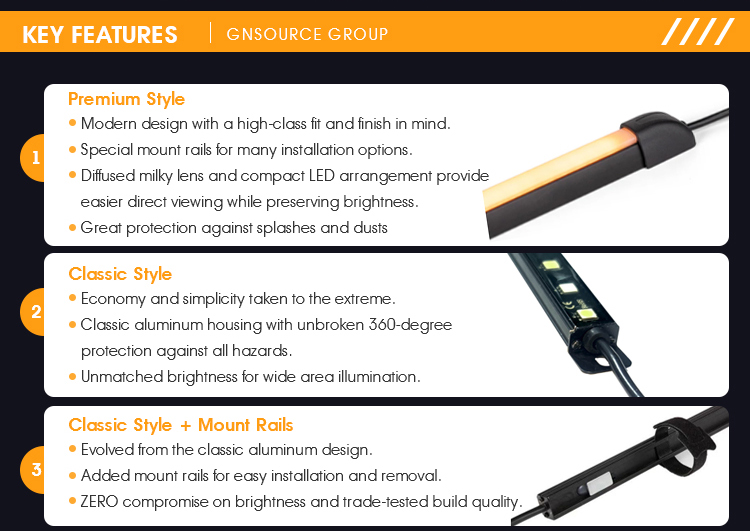 3 x 50cm Aluminum Classic Light Strips + Mount Rails, White LED