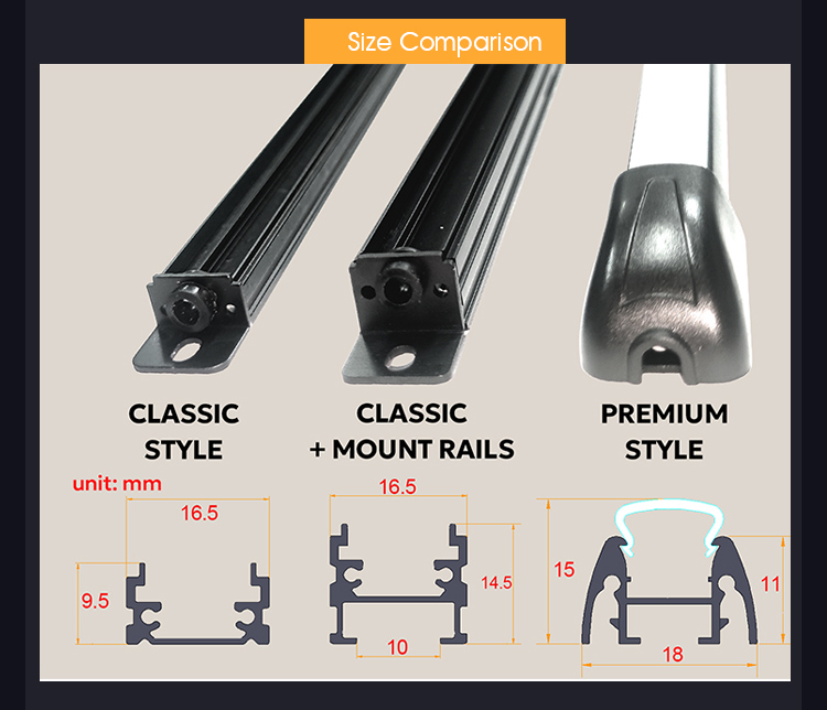 Cross Section Size: 16.5mm x 14.5mm (Classic + Mount Rails)
