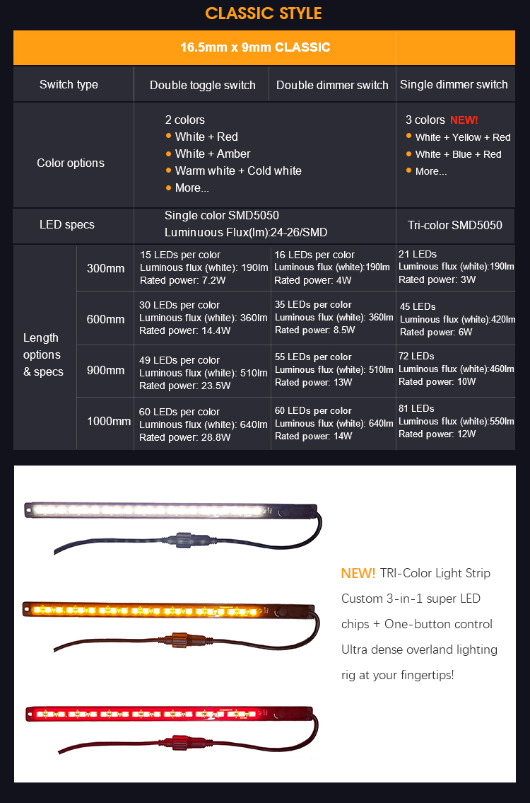 Aluminum Classic Light Strip - Dual Color, Dual Dimmer Switch - 30cm 60cm 90cm 100cm available