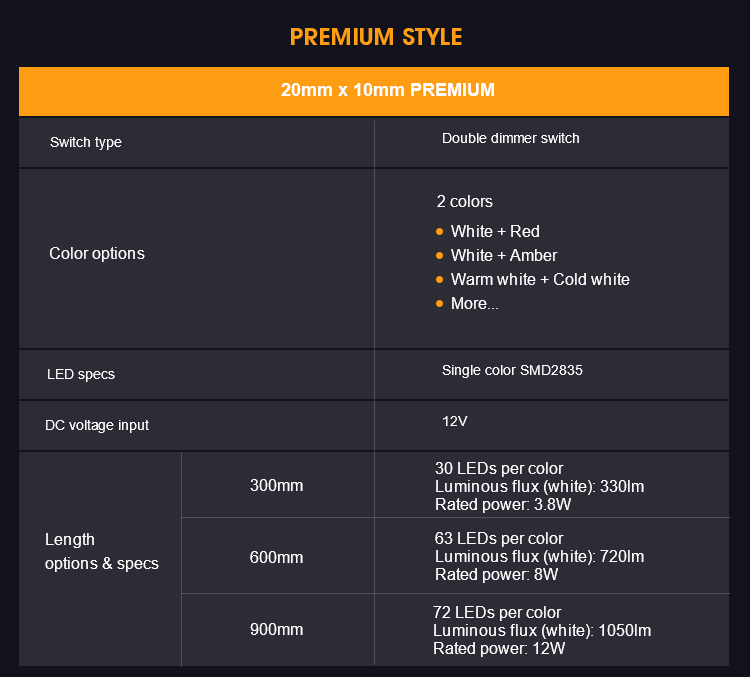Aluminum Classic Light Strip - Dual Color, Dual Dimmer Switch - 30cm 60cm 90cm 100cm available